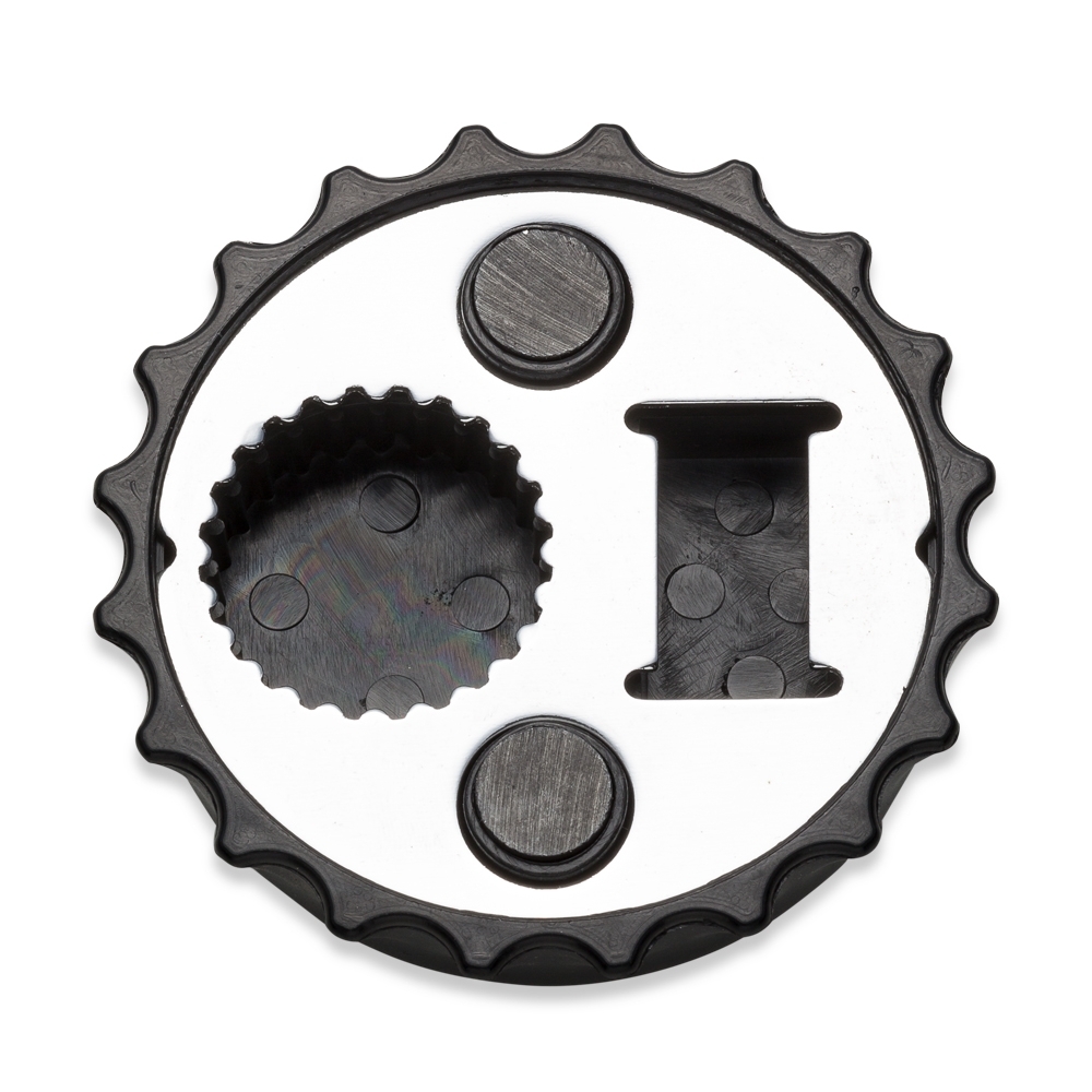 ABRIDOR DE GARRAFA FORMATO TAMPA DE METAL C/ IMÃ DE GELADEIRA – PRETO