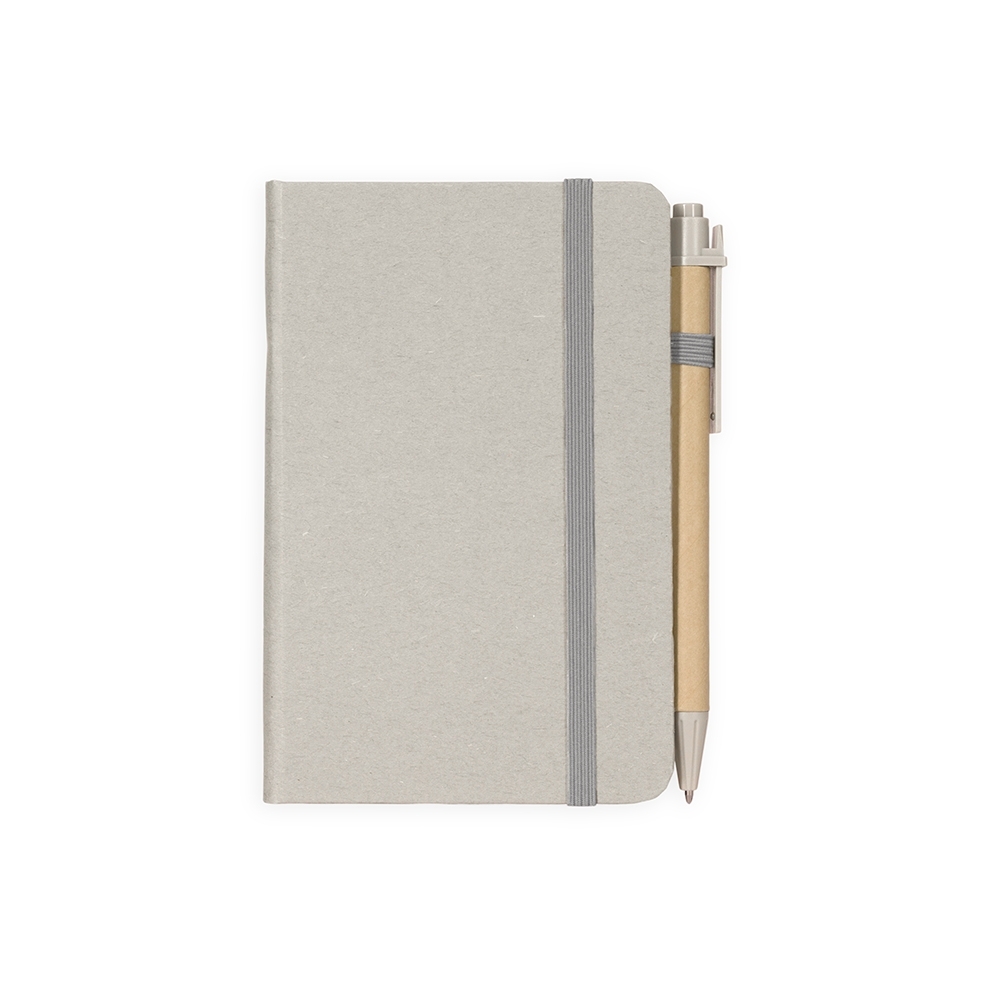 CADERNETA PALHA DE TRIGO COM CANETA- CINZA