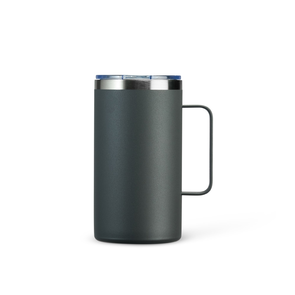 Caneca térmica em inox livre de BPA com pintura eletrostática e capacidade de até 500ml. Apresenta estrutura de parede dupla e vedação a vácuo, permitindo a conservação da temperatura de líquidos por mais tempo. Possui tampa em plástico com proteção para o bocal.