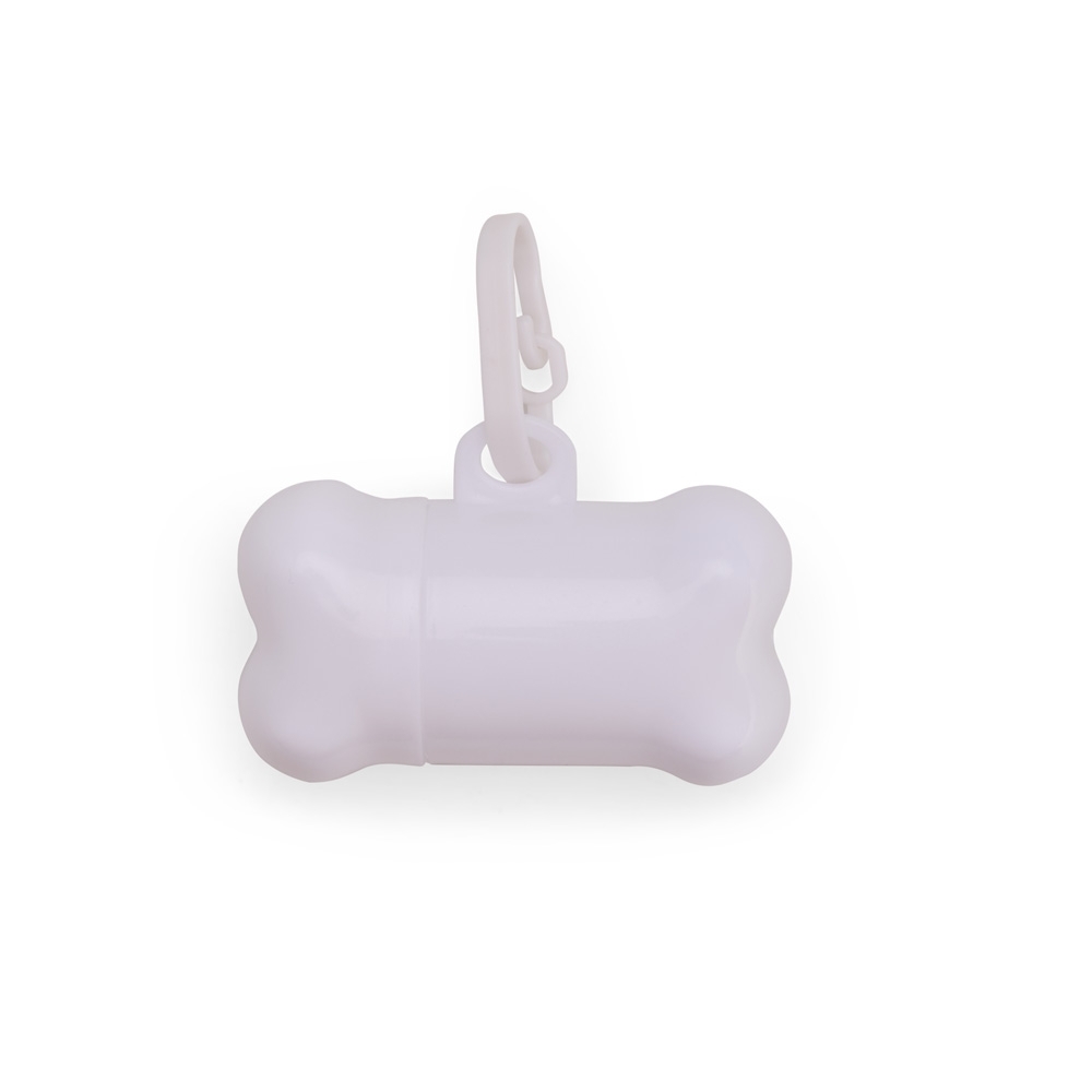 Kit de saquinhos coletores em formato de osso. Feito em plástico, possui abertura rosqueável que permite encaixar o refil, além de espaço para a retirada dos saquinhos. Acompanha mosquetão de plástico e refil de saquinhos.
