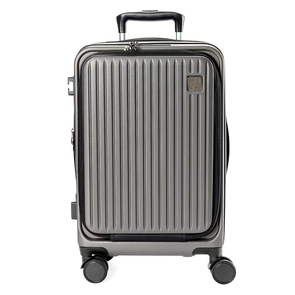 Mala de viagem feita em ABS com capacidade de até 33 litros quando o zíper externo de expansão é aberto. Possui abertura frontal com bolsos de zíperes, uma divisória para notebooks de até 15,6 polegadas e cinta compressora para roupas. Conta ainda com cadeado TSA embutido na parte superior, quatro rodinhas giratórias 360°, duas alças de mão, além de apoios e ganchos laterais. Acompanha placa metálica personalizável.