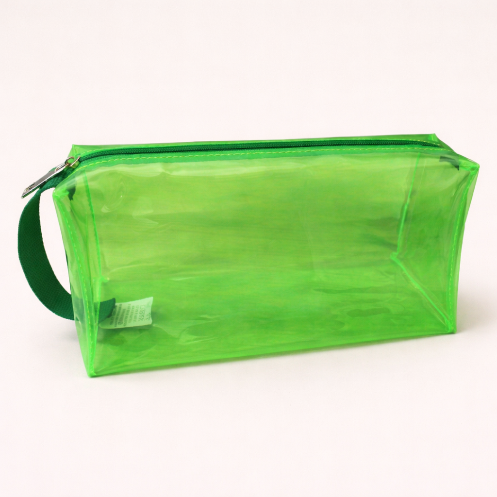 Necessaire cristal ONG na cor verde, confeccionada em PVC transparente (cristal), material resistente, durável e de fácil limpeza. Ideal para organização e transporte de itens pessoais ou materiais diversos. Possui alças de mão reforçadas, proporcionando praticidade e segurança no uso diário.