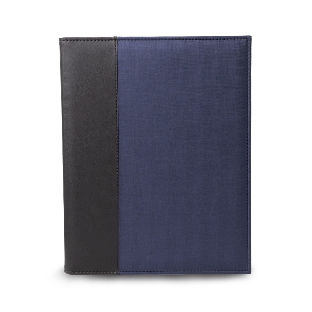 Pasta convenção de couro sintético, possui porta caneta, dois compartimentos, sendo um para arquivar documentos e um bloco com aproximadamente 15 folhas brancas não pautadas.