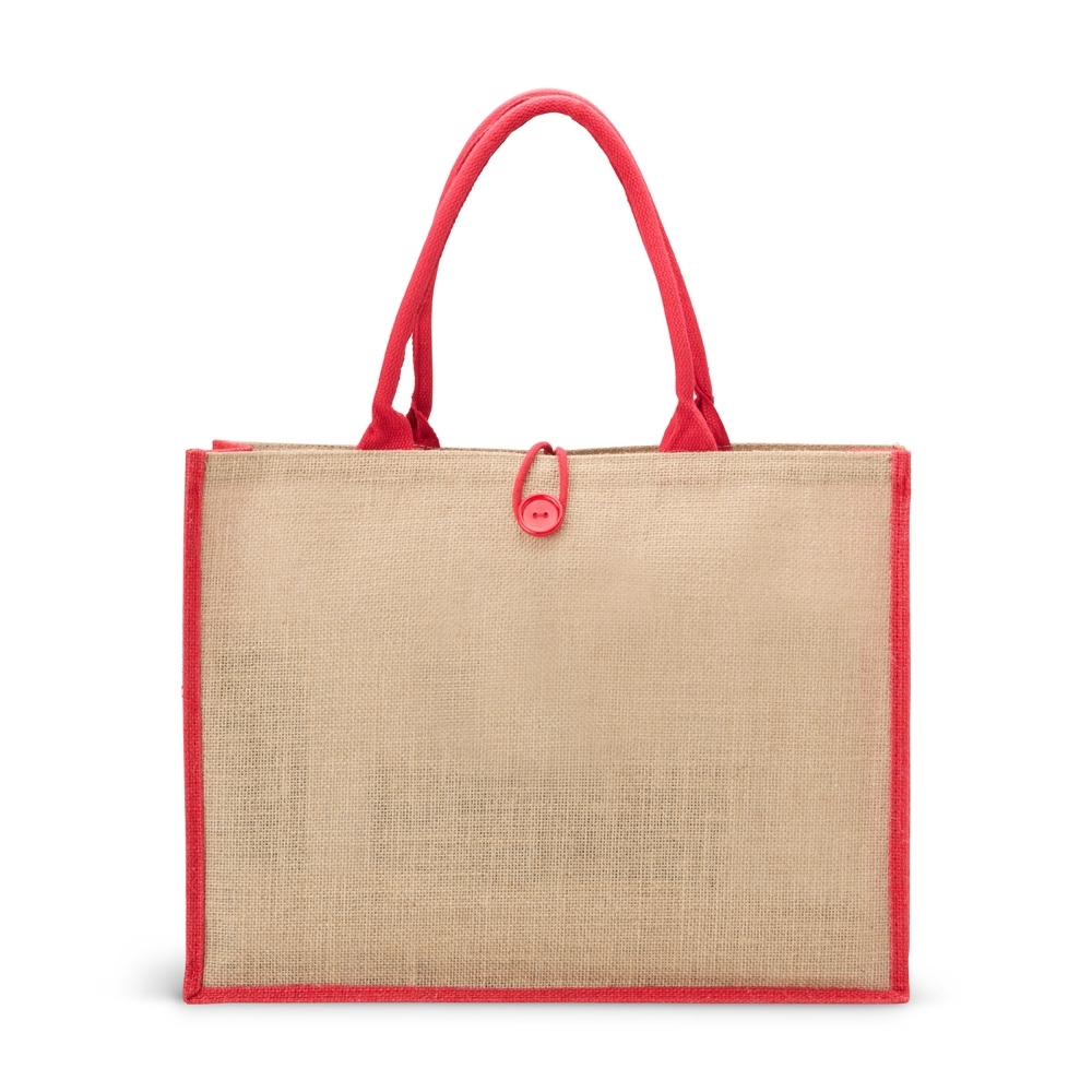 SACOLA DE JUTA COM BOTÃO- VERMELHO